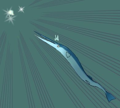 カジキみたいな硬くて細長い口が特徴の魚だよ。
